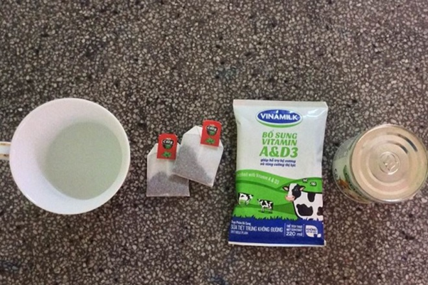 Chuẩn bị nguyên liệu để pha trà sữa từ túi trà Cozy